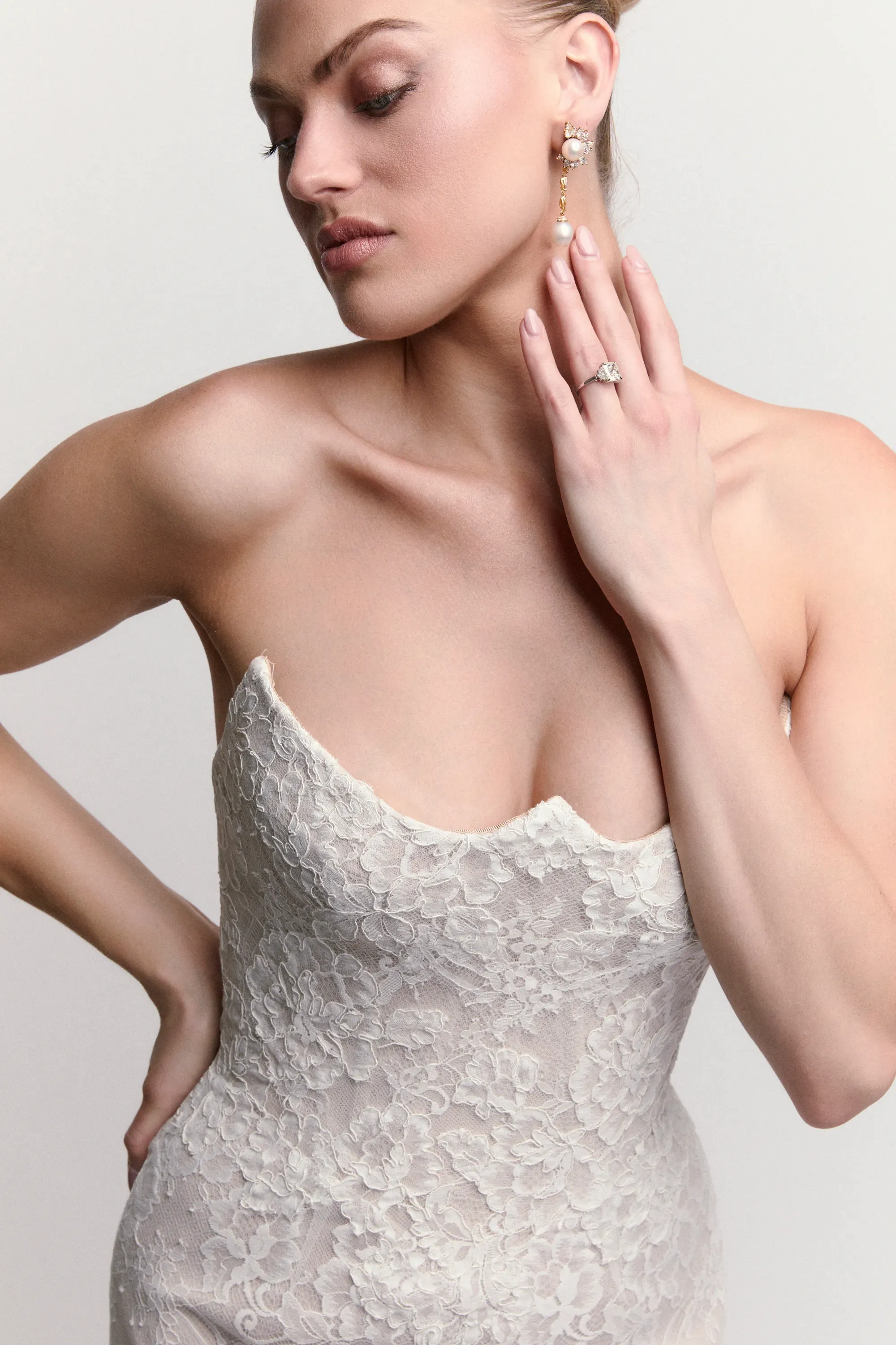 Fabric:Cherish Corded Lace, Illusion Tulle, Soft netting, Stretch Poly Charmeuse, Uncorded Cherished Lace