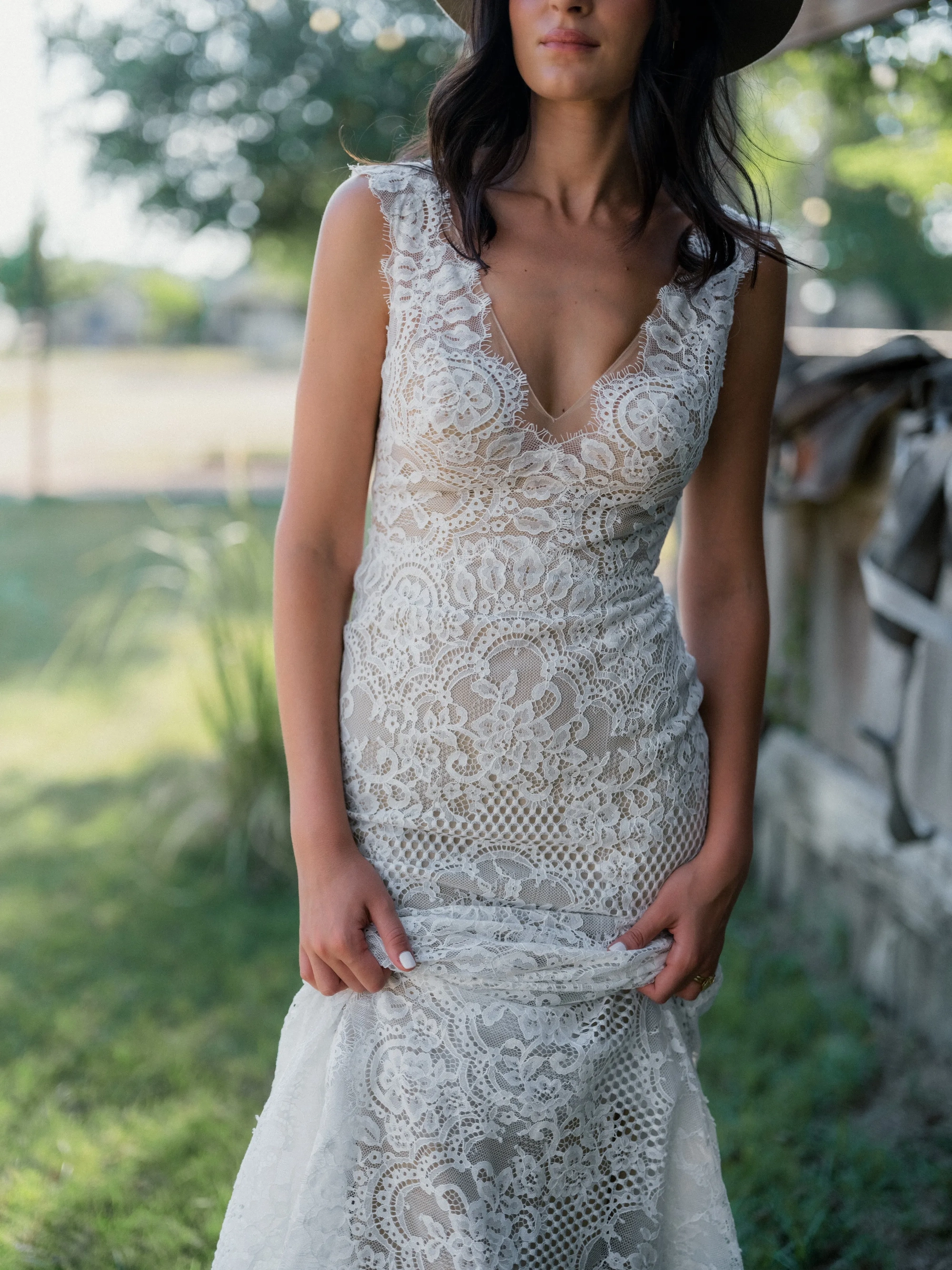 Fabric:12L Pearl Buttons, Abrazo Mesh Lining, Illusion Tulle, Matte Organza, Valka Lace