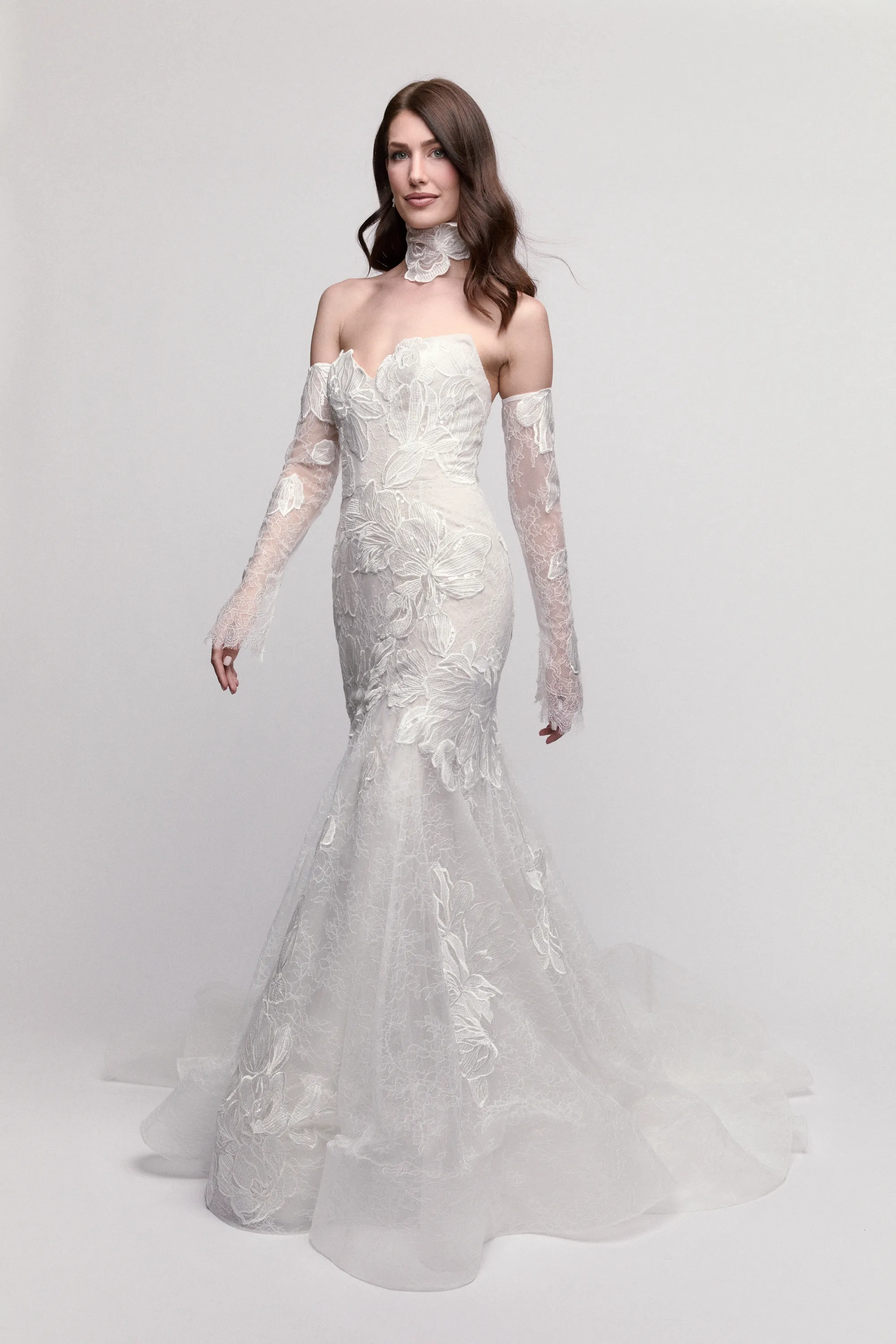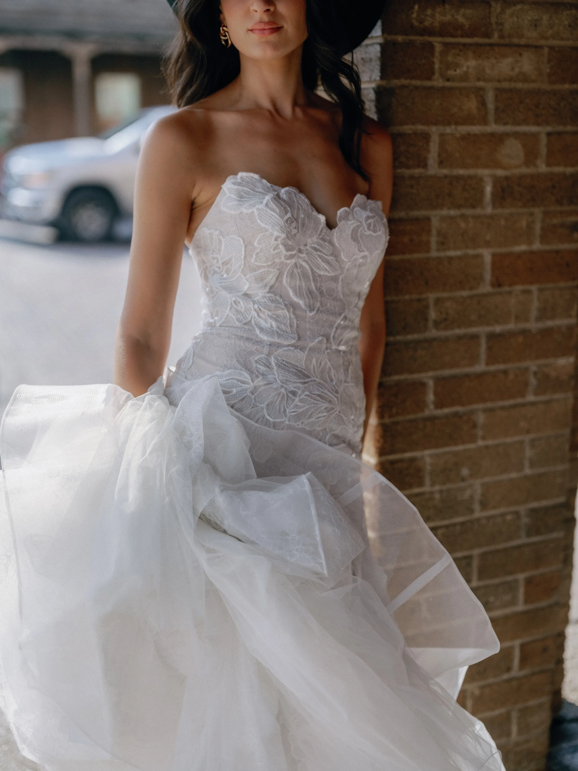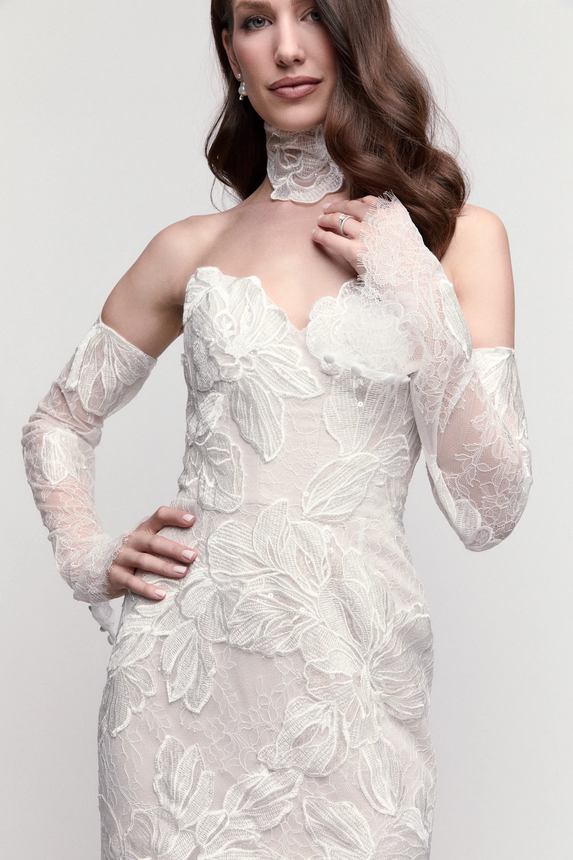 Fabric:Carlo Floral Lace, Soft netting, Stretch Poly Charmeuse, Thicket Lace, Tulle