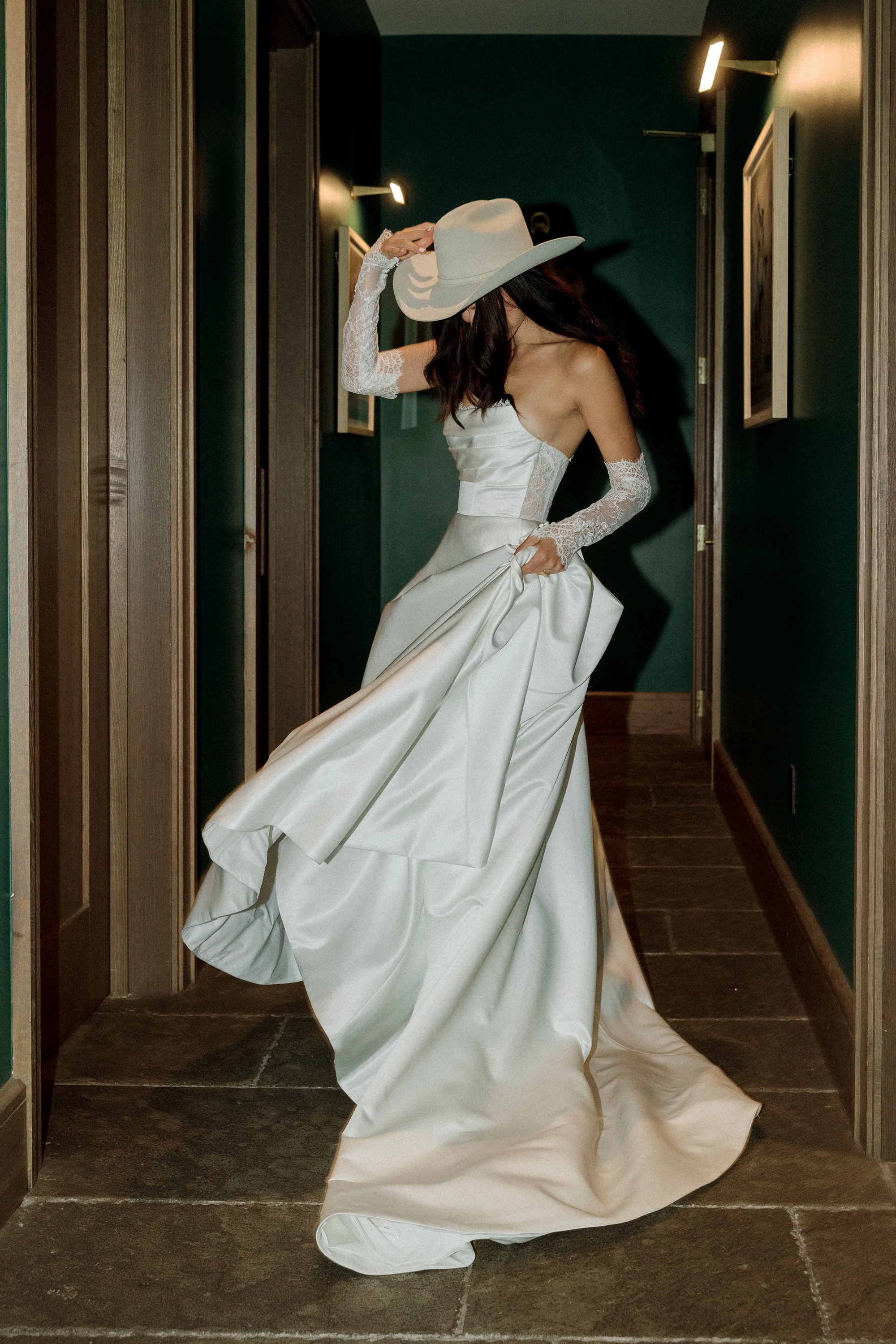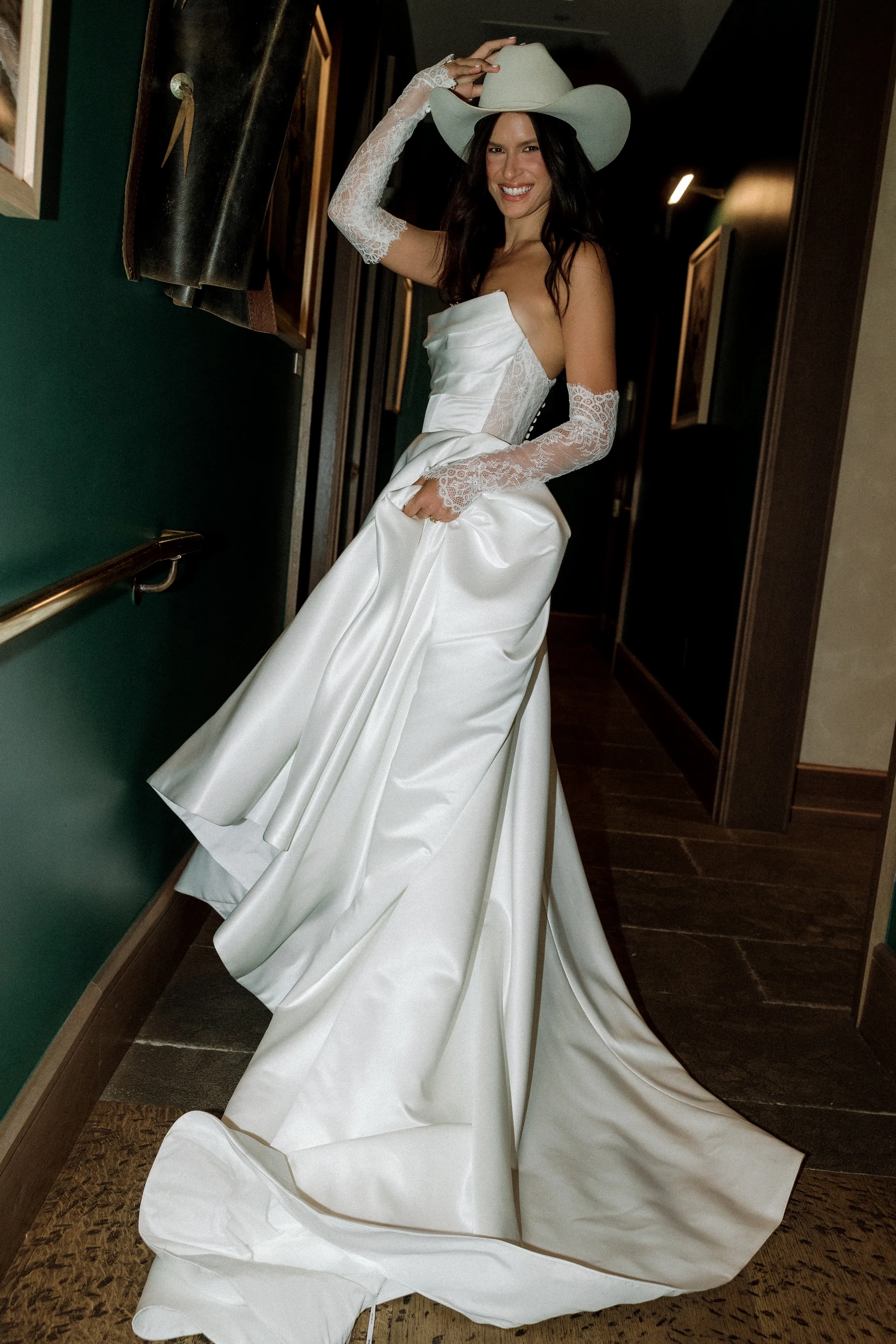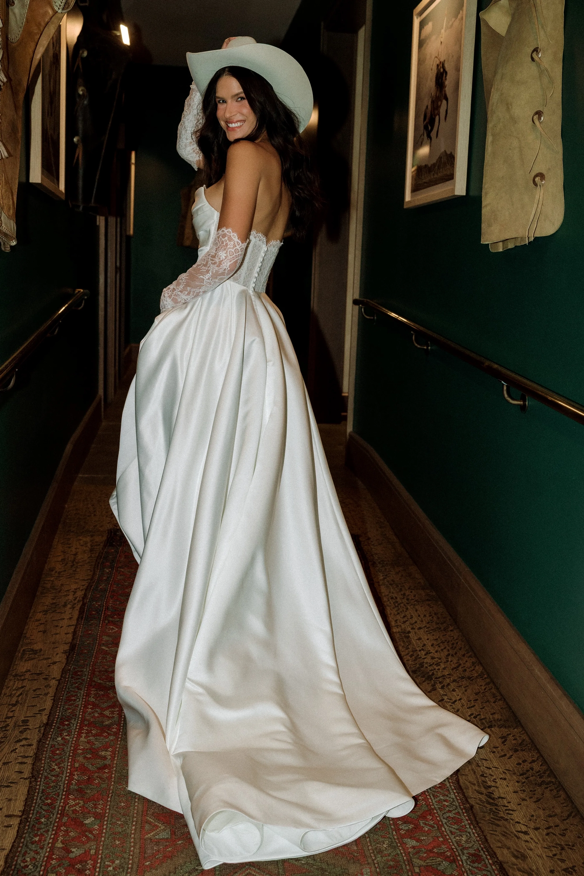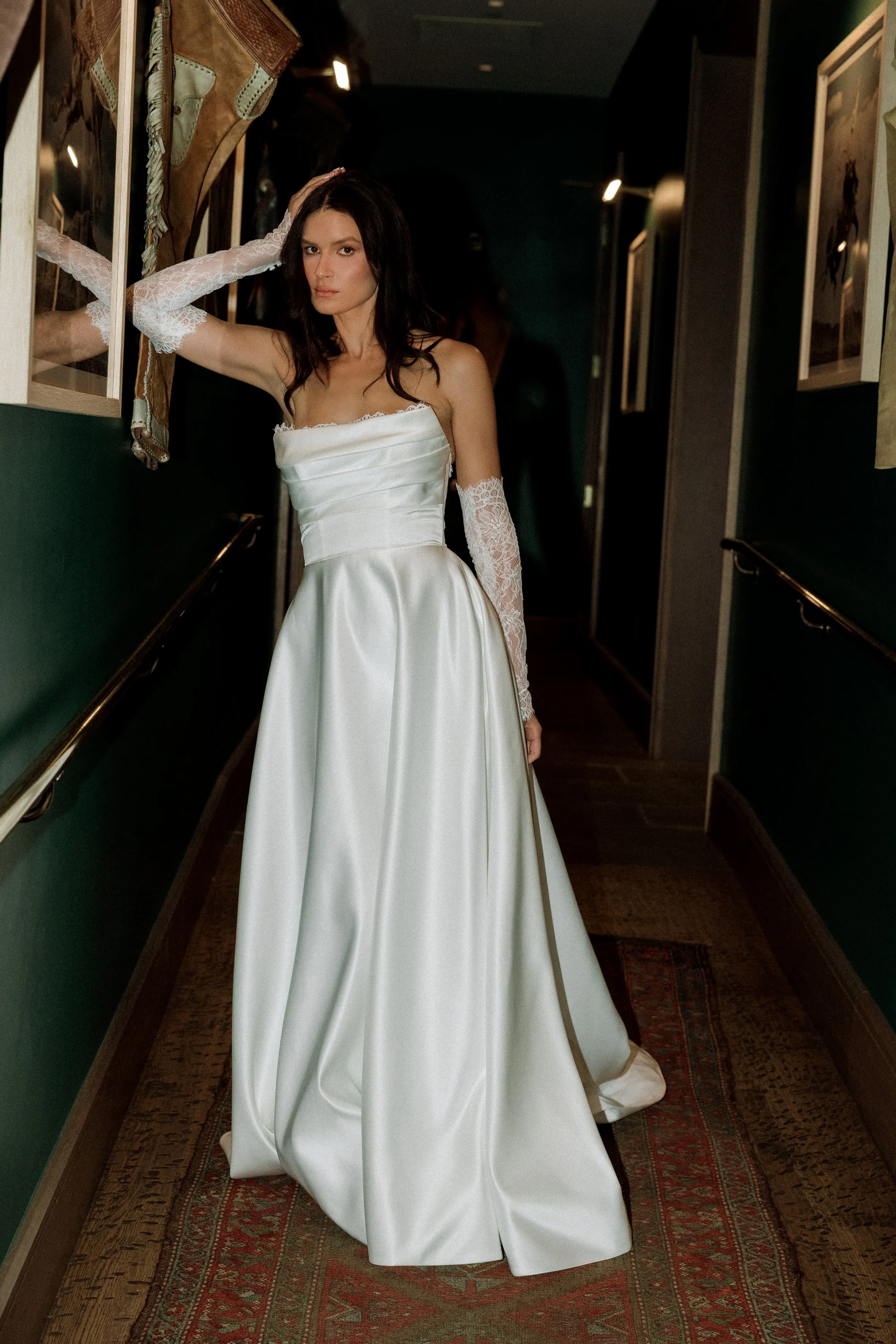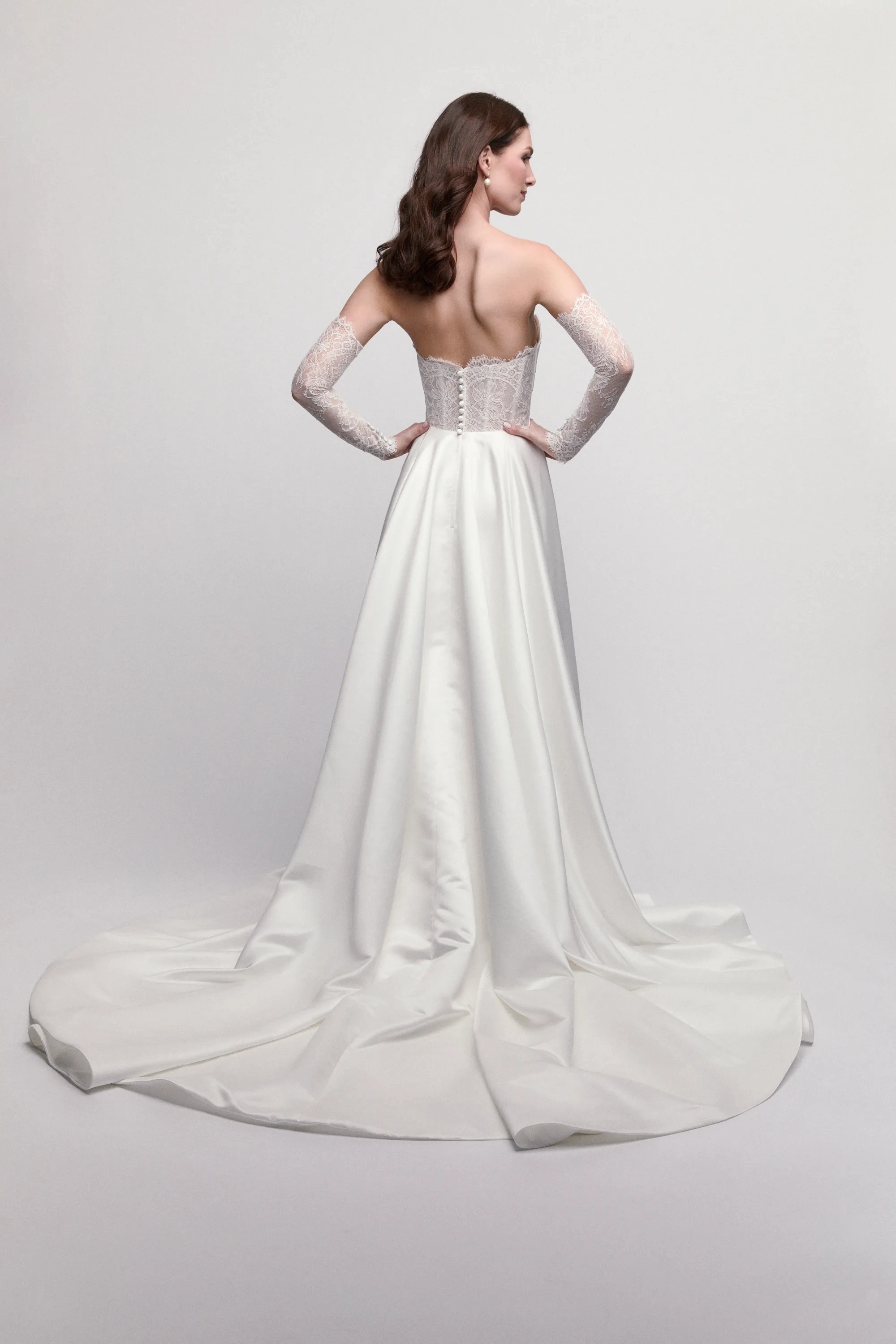 Fabric:Illusion Tulle, Matte Organza, Pansy Chantilly Lace, Poly Lining, Sutton Satin